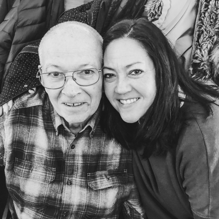 I figured that was approaching the excitement quota for the 15 hours I was in town. After the great COMPUTERCLEANUP OF 2019 was finished we tried to take some quick pictures. Let’s be real, I hate getting my picture taken, and my dad is even less of a fan. But every time I see him, the deterioration is more obvious, and he is literally dying in front of me, disappearing physically and mentally. I always think this might be the last picture, now. So, my sister said, “Squeeze in there close like you love her, Dad”. And he said, around a mouthful of M&Ms that he was eating as fast as my granddaughter, “I do love her.” I wiped the chocolate off his cheek, took the kimchee my mom packed up (and which I just now realized I forgot to tell my husband is in the outside fridge! Sorry, honey!) and hit the road. I was a mile down the freeway when I realized, that is the first time my dad ALMOST said he loved me. I know he DOES. I thought I was totally fine not hearing the words, because he didn’t grow up in a super affectionate, expressive family, and neither did I. I always say, “I love you” on the phone and he always says “Thanks” or “Here’s your mother” or something equally awkward. Maybe now he realizes every goodbye just might be our last goodbye, too. I hate dementia and the way it is killing him in slow motion. But it is giving me a chance to say goodbye slowly, too. To listen to the things that have been hard to say. To try and show love in a way that can be felt when a lot of the memories are going.