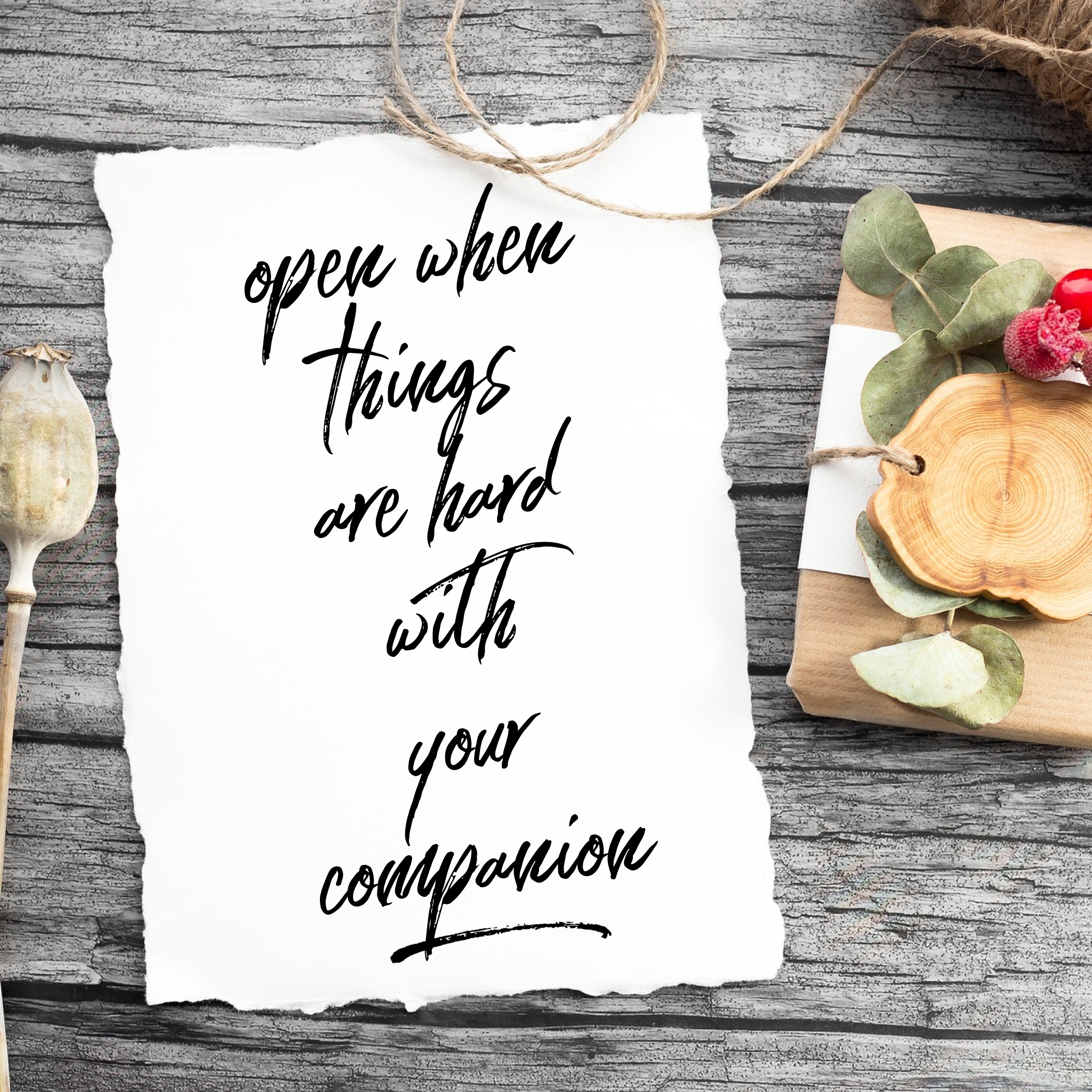 2. Open when things are hard with your companion- Idea for the quote: ““Do not waste time bothering whether you ‘love’ your neighbor; act as if you did. As soon as we do this we find one of the great secrets. When you are behaving as if you loved someone, you will presently come to love him.” C.S. Lewis