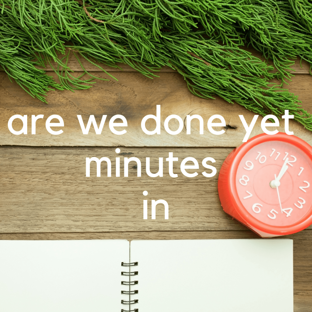 My inner child has started asking me that question on a loop. Arewedoneyet? Arewedoneyet? Arewedoneyet? I feel that this has been my attitude too many of my days, lately. I mean, we are NEVER going to be done with this freaking tree, but the country on fire and Covid and wedding prep and at some point I need to schedule a nervous breakdown…