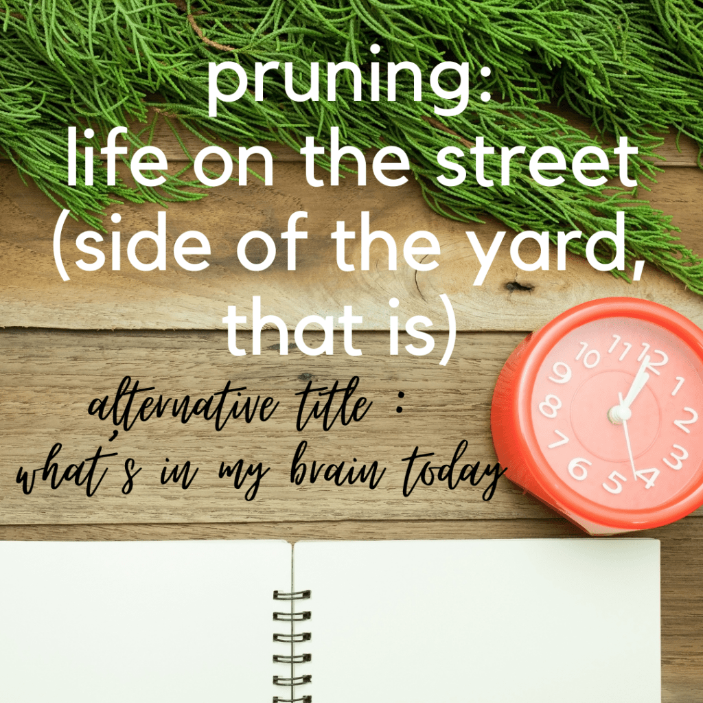 I was helping my husband with some pruning today and I thought I would share some of my thoughts, because who doesn’t want to know what’s going on in my brain sometimes? So here we go…